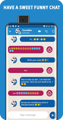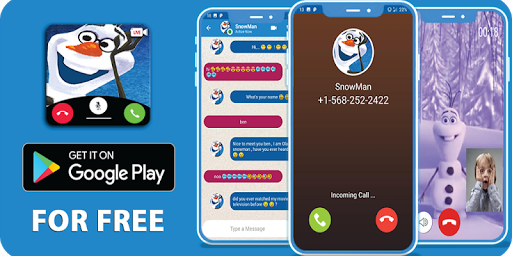 This is a easy app that help you simulate receiving phone calls and video calls and chatting with [olaf snowman], you can also play a funny arcade game that you will find in the menu,in this game you will have the possibility to play using the snowman character, the game have many levels and hight quality design, and all the app can be used offline mode.