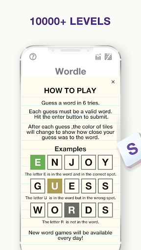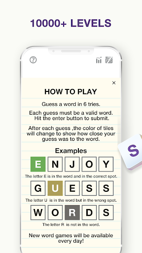 If you are a huge fan of word games ,you shouldn’t miss Word Guess. The rule is simple yet gives you endless fun. You have 6 tries to guess a five letter word ,at each guess ,the color of tiles will change to show how close your guess was to the word.