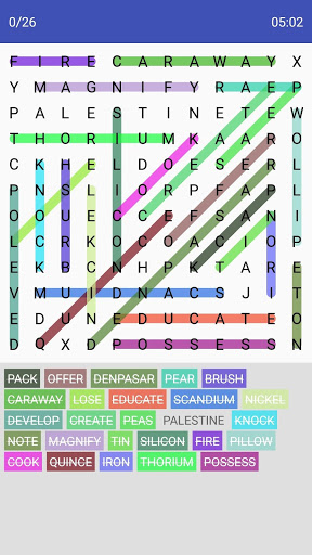 To pass a level find all the words listed on the board.