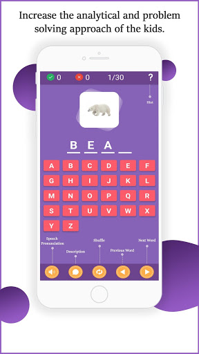 Wide Range of Categories to excel kids learn to spell in each & every domain with pictures & pronunciation , This game will increase the analytical and problem solving approach of the kids –