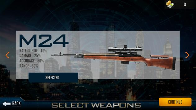 Mission description is given at the beginning of each mission of Sniper 3D Kill Shot, use this description carefully to identify the high risk target and eliminate it. Use your Sniper Scope to get the clear view of your red target, aim it perfectly and snipe him down with clear shoot. Avoid killing local people because it will result in mission failure. If you forgot to upgrade your weapon to play the next, just hit that label "upgrade your weapon" in game play and buy required weapon to complete your mission.