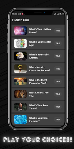 This Hidden Quiz game is designed exclusively for mobile. Play free anywhere, anytime. Hidden Quiz delivers the highly accurate result about the user. The Quiz questions in this game is developed for fun but you will get accurate result. Simply choose which quiz you want to play then answer some simple questions and your truth is on your screen.