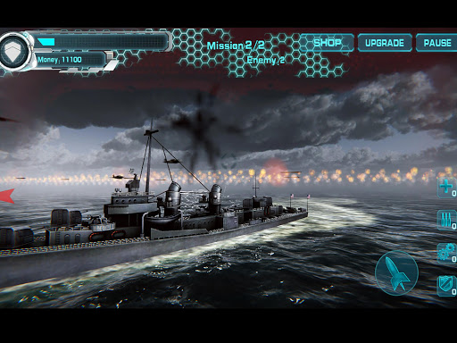 screen can be clicked on, upgrade their warships and purchase props in the store.