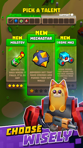 Zombie Crusher is a roguelike surviving game where your main goal is to harvest waves of various monsters and defeat mighty bosses. Choose skills, upgrade them and create unique combinations to keep destroying enemy legions in dozens original ways! But be really careful about abilities you pick, you are limited only to six attack powers and six support upgrades per battle, so make sure you have a solid plan! Defeating enemies is not just a captivating process but is also profitable: earn EXP to become stronger during the match and collect gold to purchase permanent upgrades between the battles! Everything has its cost and the power is not an exception - enhance your armor, weapons and equipment with gold that you've gathered in your adventures, and keep annihilating hordes of monsters even faster.