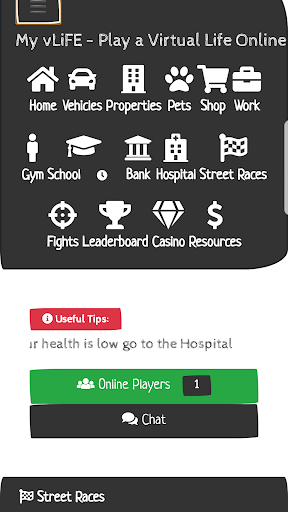 My vLife is an online game in which you can have your own virtual life. You can buy vehicles, items, properties and you can do many activities.