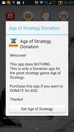 This app does NOTHING. This is only a Donation app for the great strategy game Age of Strategy. Purchase this app if you want to DONATE for AOS. Thanks!