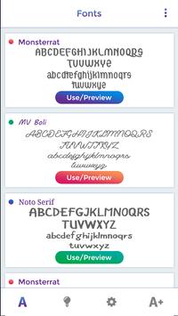 First screen to display the list of option which you want to choose for sample font style.
