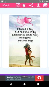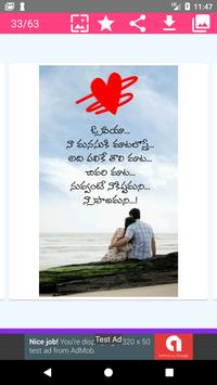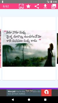 Lots of romantic and heart touching telugu love quotes or prema kavithalu quotes available. Save your telugu love quotes image directly your SD card or Phone Gallery.