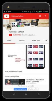 10 Minute School has over 4,000 video tutorials on the entire academic syllabus of Bangladesh, university admission topics and software and skills training. The videos for university admission ranges from content specified for each university in Bangladesh while those for software training offers free training in Microsoft PowerPoint, Adobe Photoshop, Illustrator and AfterEffects, among others, and trains students on Presentation Skills and grooms them on extracurricular skills, corporate grooming and career preparation.