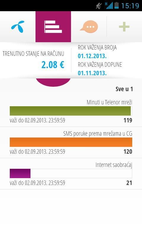 سواء كنت مستخدم المدفوعة مسبقا أو لاحقا، والآن في كل مرة كان لديك وجهة نظر بسيطة وإمكانية تفعيل الملاحق وحملات الموضعية التي تهمك. بالإضافة إلى ذلك، هناك كل المعلومات عن حالة حسابك، أو مبلغ القرض والمكملات الغذائية، فضلا عن تمثيل رسومي للدقيقة المتبقية، ورسائل ميغا بايت.