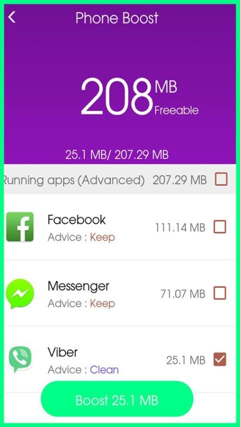 أ- زيادة الألعاب والتطبيقات الداعم، تحرير النظيفة التطبيقات تعزيز أداء اللعبة والداعم الإفراج رام مجانا سيد نظيفة توسيع Boosterer لتسريع اللعب، كما أنه