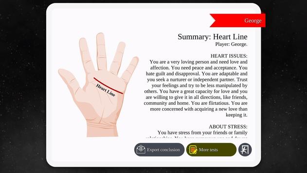 This application uses simple-quick and entertaining image tests to give you accurate results about dousing of palm lines, palm fingers and palm marks. All results are based on information about the ancient art of palmistry and real world tendency. Not generic or even random results given by other automatic photo-analyzing hand reader apps. Dont trust other casual finger scan, palm reader scan and scan finger apps. These give very simple and even random results. Try our hand reading app and you will be amazed be the quality, the outcome and the future prediction. Find your defect and then reccrect it. Learn how to read you hand youself. I can pedict my future by knowing my inner self. Do you need a thing that tells your future? You found it.