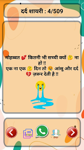 يمكنك مشاركة مشاعرك المحزنة من خلال هذا تطبيق Dard Shayari.شارك مشاعرك مع أصدقائك والتنزيلات والتحميل في جميع وسائل التواصل الاجتماعي.