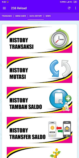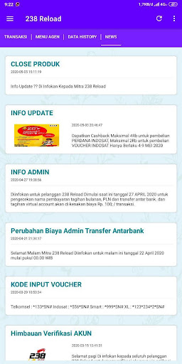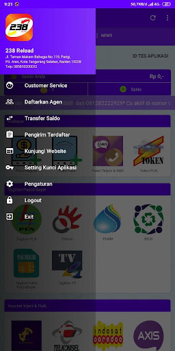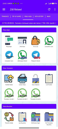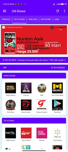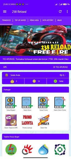 تطبيق Android 238 RELOAD هو تطبيق محمول مجاني للأعضاء المخلصين 238 إعادة تحميل في كل مكان. هذا التطبيق يسهل عليك إجراء العديد من المعاملات مثل ملء الائتمان ، وشراء الرموز الرموز الكهربائية ، ومدفوعات الفواتير المدفوعة الأجر ، ومشتريات قسائم الألعاب ، وما إلى ذلك. خلاصة التاريخ ، تغييرات السجل في رصيدك ، أنشطة Downline ، الدردشة مع خدمة العملاء ، إلخ. الكهرباء ، PDAM ، Telkom ، إلخ) الميزات المتصلة مباشرة بمحرك خادم النبض الخاص بنا