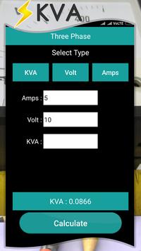 3 PHASE Kva Calculator, app trough calculate single / three phase kva .