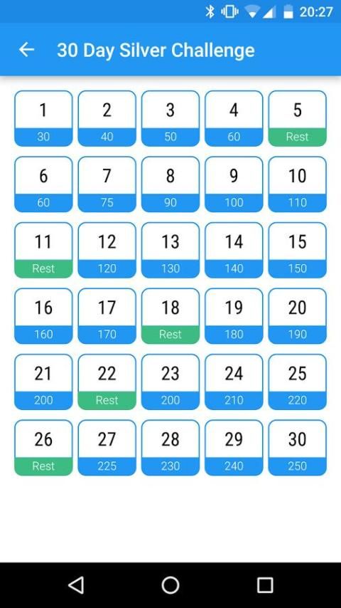 في تحديات لديك 1 ممارسة التي لديك لتفعل كل يوم، والوقت الذي يقضيه أداء التمرين سوف تزداد يوما بعد يوم لمساعدتك على بناء قوة العضلات تدريجيا، مع عدد قليل من أيام الراحة لضمان كنت قادرا على إكمال اليوم الأخير من التحدي بسهولة.