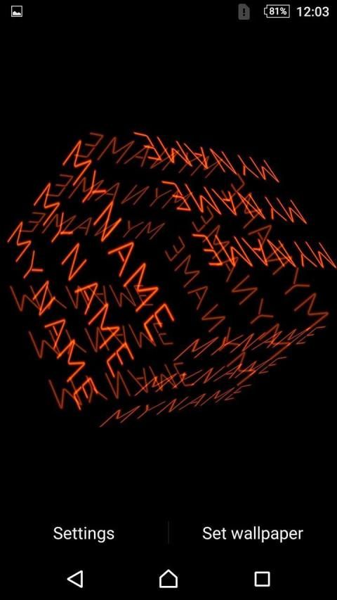 My Name Cube Live Wallpaper lets you to set your name as your phone's wallpaper.