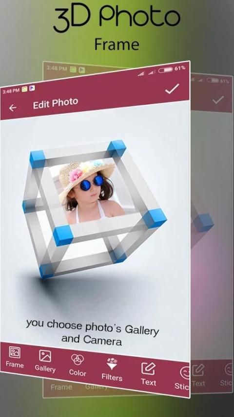 3D محرر تأثير خاص الصورة يحتوي على الكثير من الإطارات المصممة التي تمزج على صورتك لتوليد تأثير 3D.