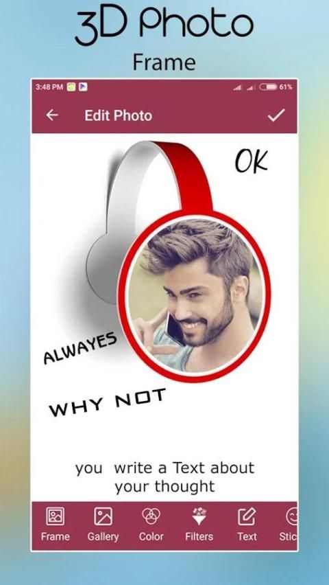 • محرر الصور 3D - إطارات، والملصقات، والنص