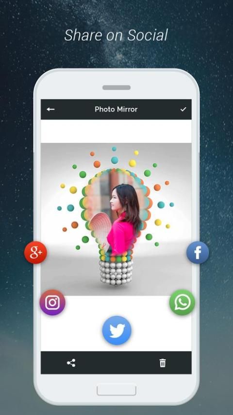 مرآة محرر الصورة. تطبيق عدة تأثيرات الصور وإطارات الصور لهذه الصور مرآة. يمكنك أيضا الكولاج صورتك مع وظيفة الكولاج التي يمكنك مارج ما يصل الى 10 الصور معا.