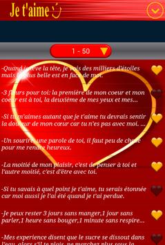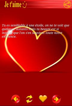 Exprimer vos sentiments et envoyer un petit message Romantique en français très doux, vous n'avez plus à écrire des SMS , il vous suffit d'ouvrir l'application, et de profiter de plus de 500 message et choisir le message que vous voulez envoyer et hop C'est fait!