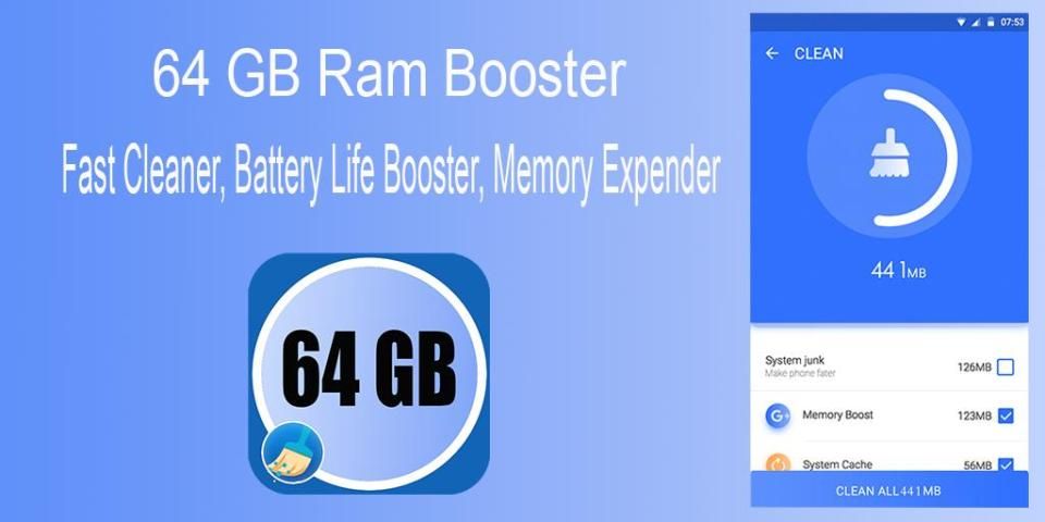 أقوى ميزة في "64 جيجابايت رام أنظف" إطلاق التطبيق رام مجانا عن طريق قتل التطبيقات غير المستخدمة التي تعمل في الخلفية وتطبيقات تأ freezeup من استخدام ذاكرة إضافية التوسع، والنقد نظيفة تلقائيا سوف هاتفك يتباطأ أبدا إلى أسفل.