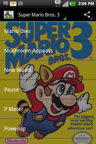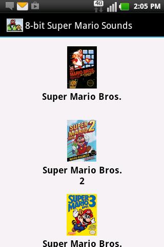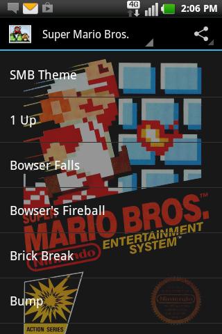 8-bit super mario Sounds is a soundboard dedicated to the Super Mario Bros. games on the NES. Enjoy your favorite sound clips from: Super Mario Bros., Super Mario Bros. 2, and Super Mario bros. 3. Clips can be saved as a ringtone notification sound, alarm sound, or can be shared with your friends Bring back your childhood with these quality sound clips, or introduce them to a new generation of gamers.This is an unofficial fan made app.