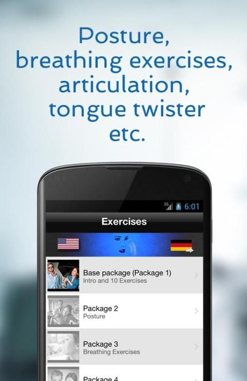هذا التطبيق هو طريقة جديدة ومحسنة لأمر أفضل من الكلمة المنطوقة. التدريبات تعالج الموقف، وتقنية الصوتية، والتنفس، والتعبير، الساكنة، حروف العلة والعرض.
