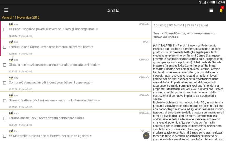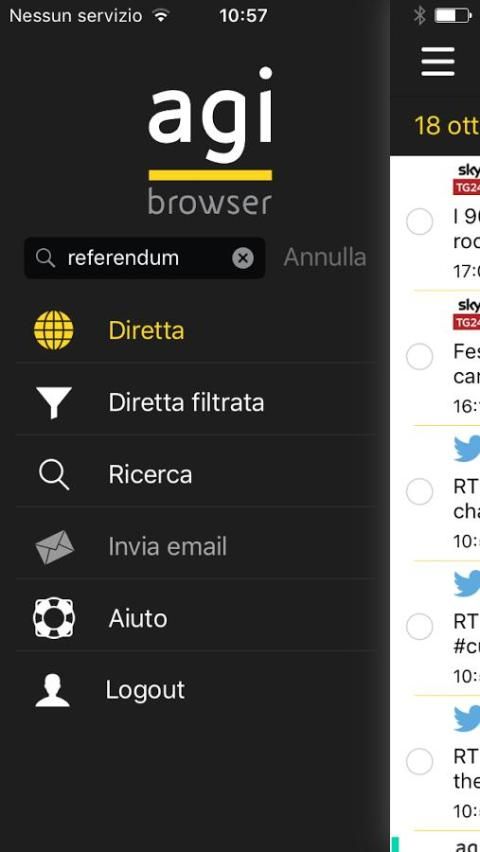 مع هذا التطبيق يمكنك عرض التدفقات صحفي في متصفح المكثف AGI واستخدام عدة التخصيص والملاحة الميزات: بحث بسيط عن طريق الكلمات الرئيسية. حفظ عمليات البحث والمرشحات مع معايير متقدمة (فئات والوكالات والتاريخ ...)؛ إشعارات مخصصة مع رسالة صوتية وعلامات ملونة. ترسل عن طريق البريد الإلكتروني إخباري واحد أو متعددة.