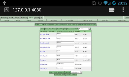 MLDonkey can be managed from remote PC accessing to its web Interface via http://RUNNING_IP:4080/