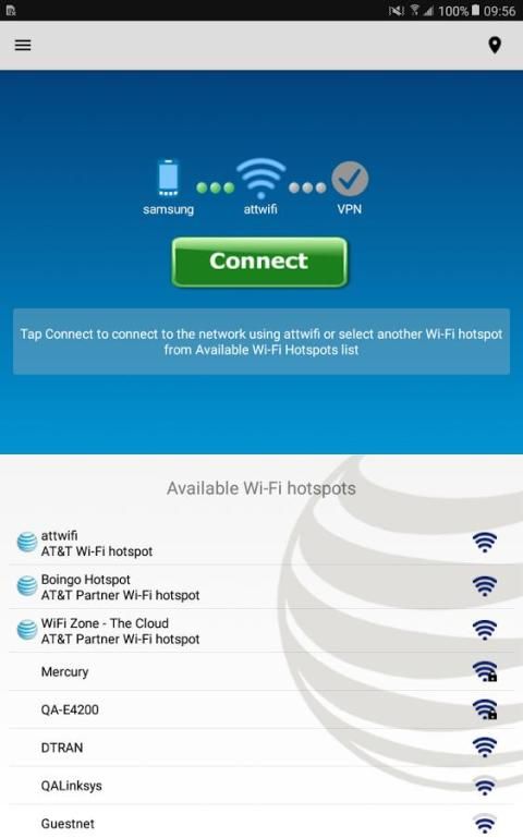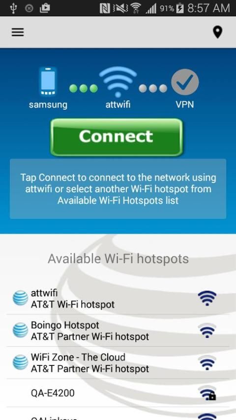 يوفر العميل AT & T الشبكة العالمية الوصول إلى أكثر من 1 مليون النقاط الساخنة واي فاي في أكثر من 100 دولة.