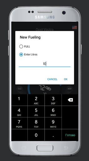 سيحسب التطبيق لترات الوقود، وسيتم عرضها كنسبة مئوية، وكذلك بناء رسم بياني مرئي.