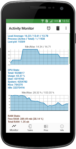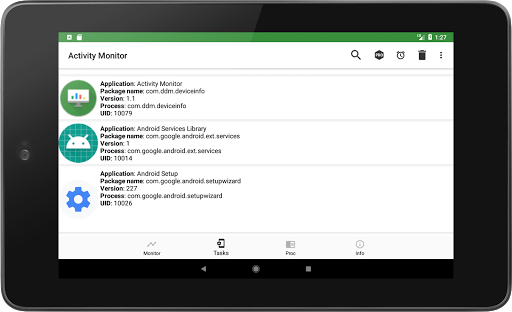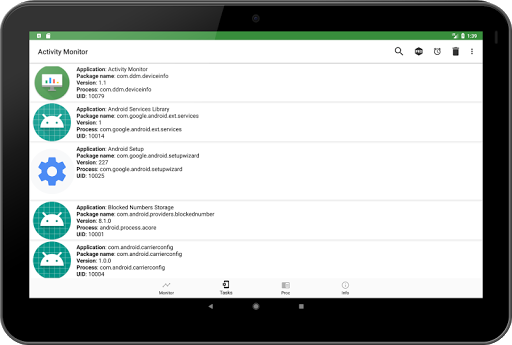 كما يوحي الاسم ، هو تطبيق مراقبة نشاط نظيف وبسيط لجهازك.يظهر بيانياً استخدامات مكونات وموارد مختلفة للنظام.يوضح شاشة Activity العمليات التي تعمل على جهاز Android الخاص بك ، حتى تتمكن من إدارتها ومعرفة كيف تؤثر على نشاط جهازك وأدائها.