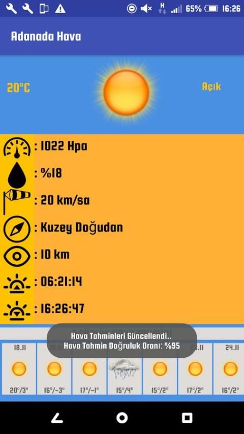 يمكنك ان تتعلم تطبيق الطقس مع الظروف الجوية في ذلك الوقت كنت ترغب في أي مكان مع معدل دقة 95٪. من السهل جدا للاستخدام.