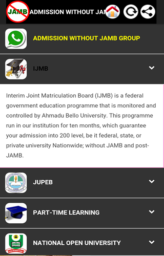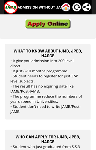 البرامج الأخرى تشمل دراسات بدوام جزئي، Yabatech بدوام جزئي (OND / HND) والقبول بدوام كامل (HND)، شهادةالبرامج، ما قبل الدرجة، دبلوم، التعليم عن بعد والقبول الوطني المفتوح الجامعي.