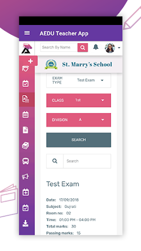 يحدد التطبيق بوضوح الطالب والفصول التي تم تخصيصها لك من قبل المسؤول. يمكن للمعلم البحث بسهولة عن قسم الطالب عن طريق إدخال الاسم. سيؤدي ذلك إلى جعل عمل المعلم أسهل كما هو الحال الآن لديهم بيانات دقيقة للطلاب مسؤولين، وسيساعدهم هذا التطبيق أيضا على معرفة التقرير المرحلي لكل طالب.