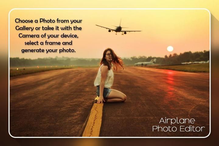 إطار طائرة الصورة هو التطبيق لطيف التي تمكنك من تخصيص صورك. اختيار صورة من معرض الصور الخاص بك أو أعتبر مع كاميرا الجهاز، حدد الإطار وتوليد صورتك.