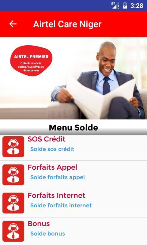 ايرتل الذاتي العناية النيجر لدينا الخدمة الذاتية الجديدة تطبيق لتطبيق clients.Cette يجلب لك خدمة العملاء 24/7 مريحة.