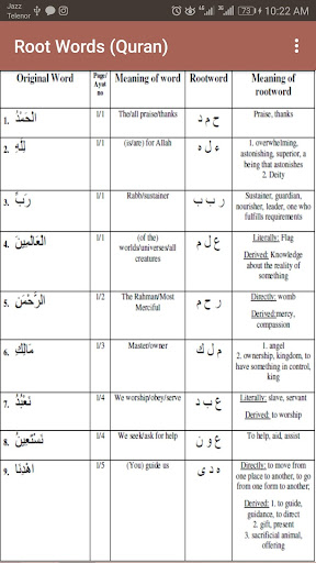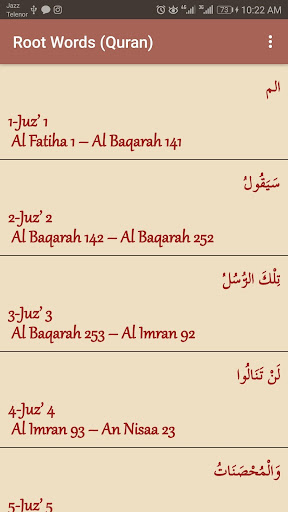 كلمات الجذر للقرآن (Juz 1 إلى 15)