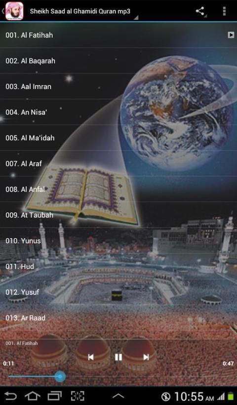 هذا التطبيق يجلب لك القرآن الكريم كامل MP3 تلاوة سعد الغامدي. التطبيق يعمل حاليا تماما. إذا كنت تبحث عن سعد الغامدي القرآن الكريم MP3 بدون اتصال بالإنترنت ثم هنا هو عليه. مجرد تحميل التطبيق وهذا كل شيء. يمكنك في أي وقت الاستماع إلى أي سورة من القرآن الكريم من دون اتصال بالإنترنت.