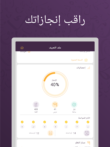 إنّ ألِف بي تجعل من تعلّم اللّغة العربية للمبتدئين أمراً في غاية السهولة، فحتى الأطفال يمكنهم القيام بذلك. شارك في أكثر من 200 درس ممتع بشكل يجعلك مولَعاً بها، من ضمن 10 مستويات من الصعوبة. انطلق إلى ما هو أبعد من تطبيقات اللغة العربية الأخرى مع دروس في الكتابة، القراءة، والتحدث باللغة العربية لأولئك الذين يسعون وراء الفهم العميق.