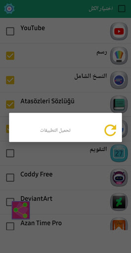 1 ميزة اختيار الكل تستطيع من خلالها ارسال كل تطبيقاتك بمرة واحدة