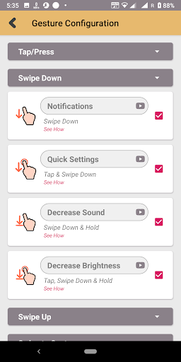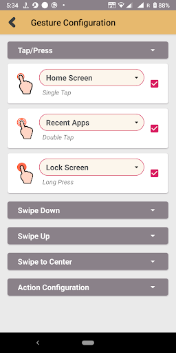 زر مساعد يخلق إمكانية قدره 15 إيماءات مختلفة عن طريق الجمع بين الصنبور، وسحب الإيماءات والحصول على الإيماءات.