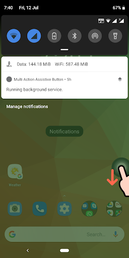• اسحب لأسفل> لوحة الإعلام المفتوحة