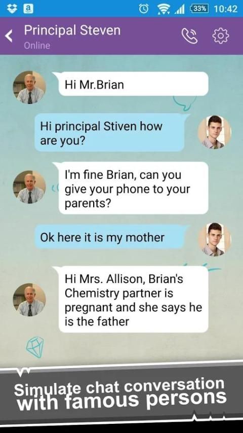 With this application you can fool your friends, family or your girlfriend by simulating a conversation with false SMS messages/chat or simulate phone calls.