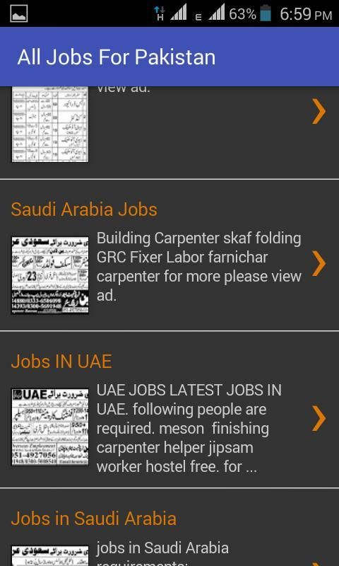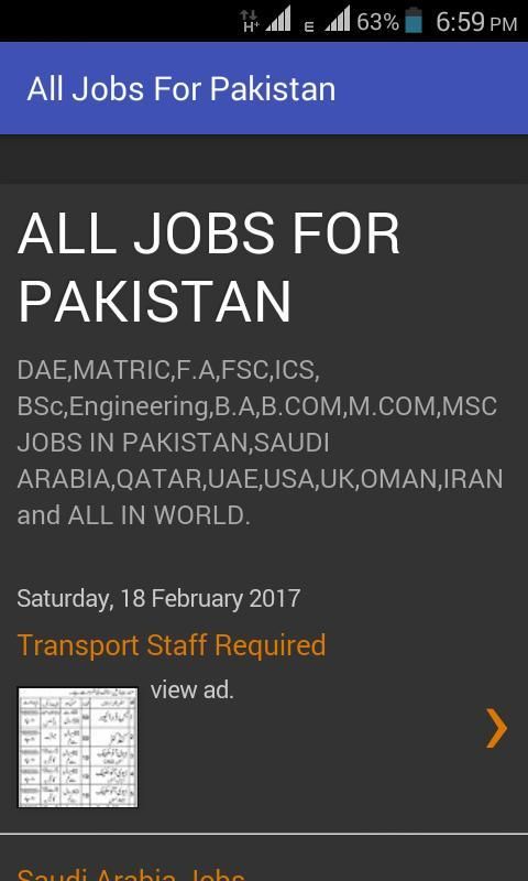 تم تطوير هذا التطبيق لجميع الروبوت Devices.in هذا التطبيق يمكن للناس أن تجد جميع أنواع الوظائف في باكستان.