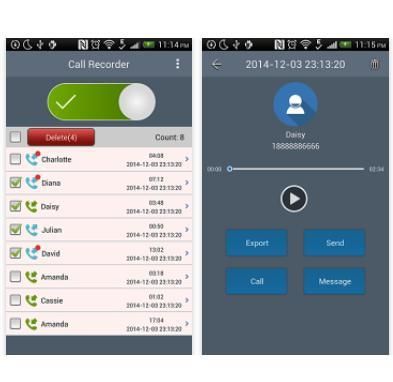 3 recorded voice is clear, you can use the built-in playback applications and easily export your recorded calls on the SD card and send it by e-mail, WhatsApp or other means;