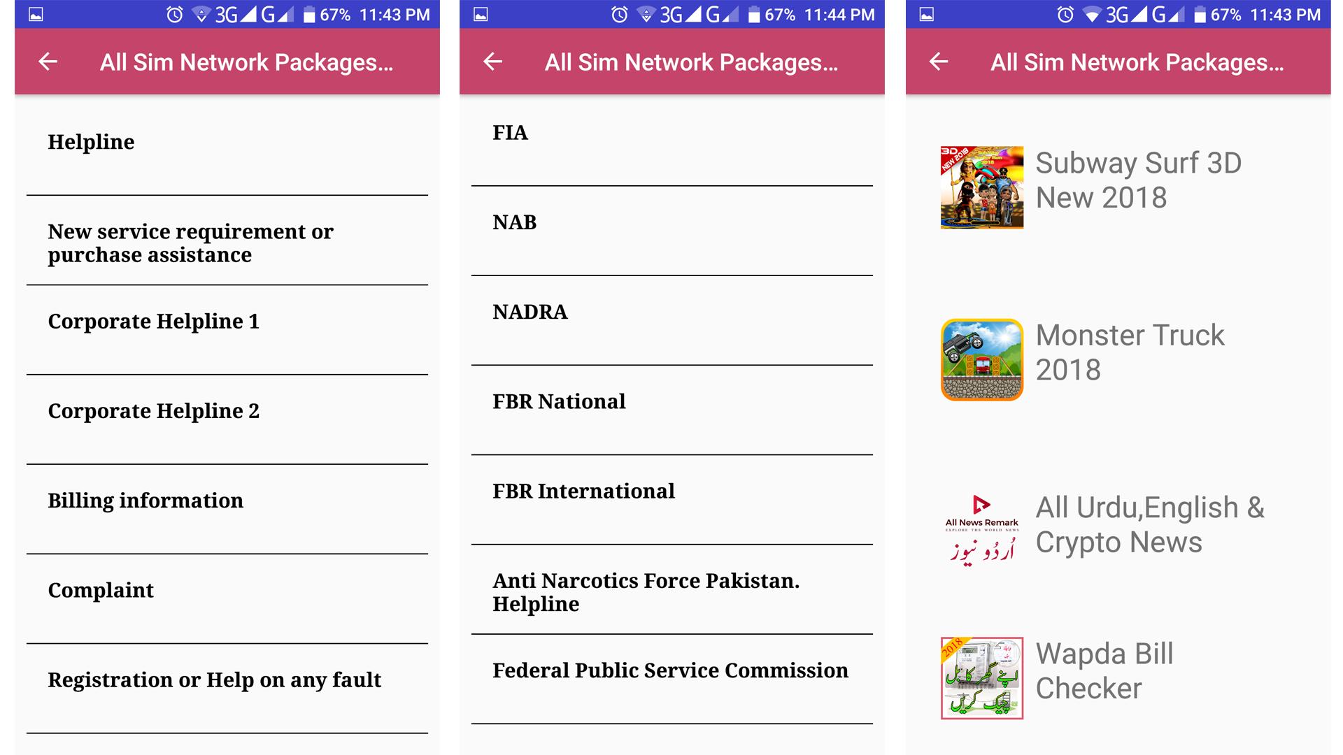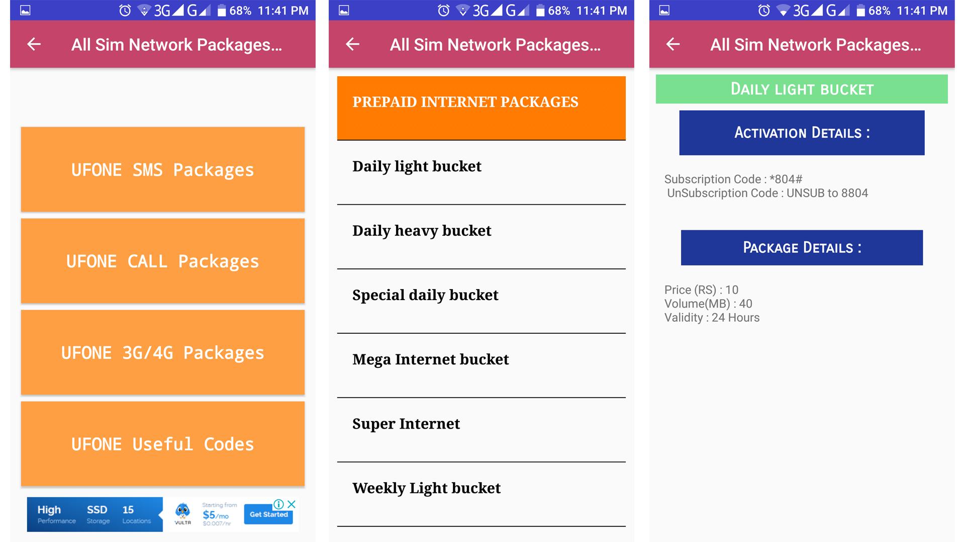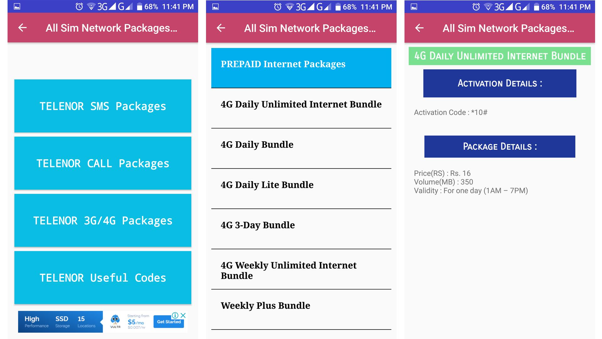 You can find following Mobilink, Zong, Ufone, Telenor, and Warid packages and offers information on this app: