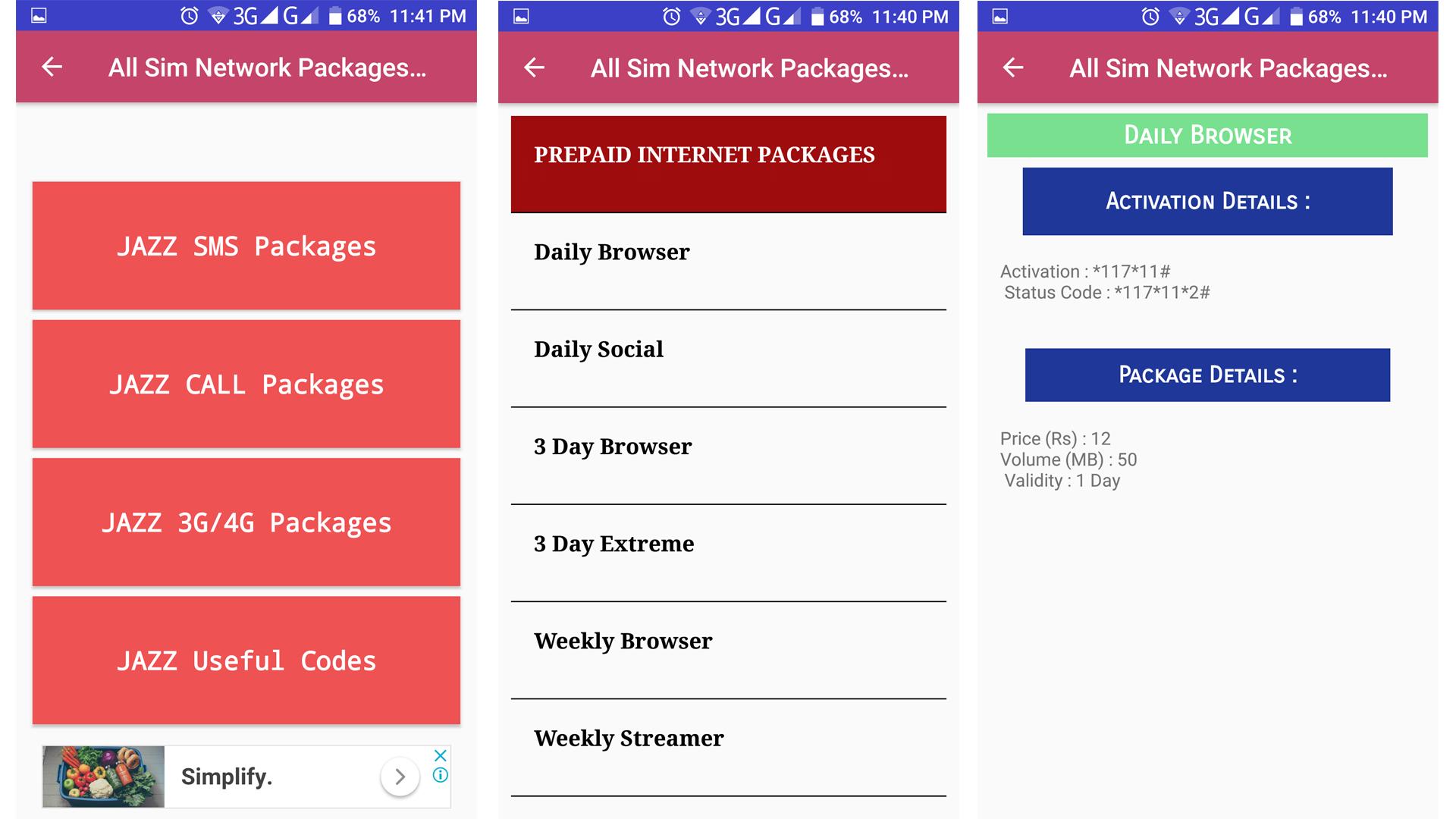 Now, you don't need to remember tough and complicated packages subscription codes and their details. You have to install All Network packages app once, and you will have information about all the latest packages in your hand without any additional Internet connection.