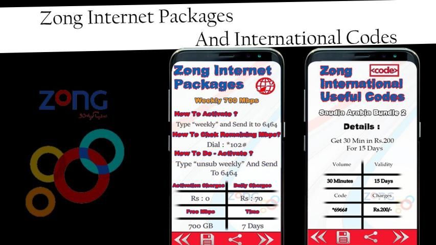 * الحزم الدولي جميع ZONG مثل نداء ،، SMS، الإنترنت